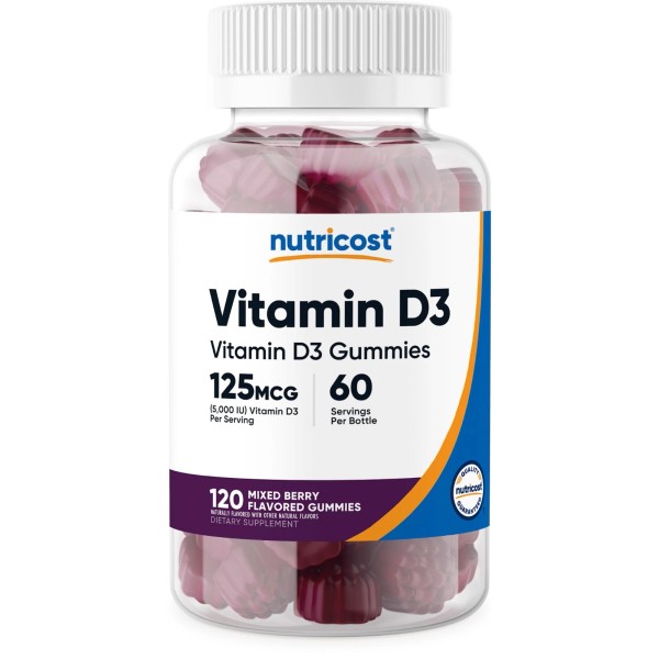 Gomitas Nutricost Vitamina D3 5.000 UI (125mcg), 120 Gomitas - Sabor Mixto de Bayas
