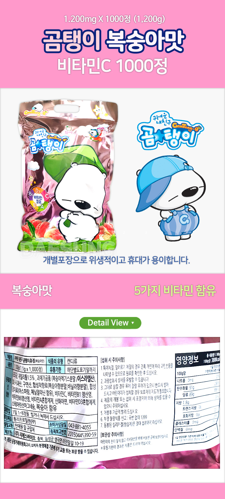 Gomtaengi Vitamin 1000 Tablets Peach Flavored Children’s Vitamin Large Capacity Character Kids / 곰탱이 비타민 1000정 복숭아맛 어린이 비타민 대용량 캐릭터 키즈