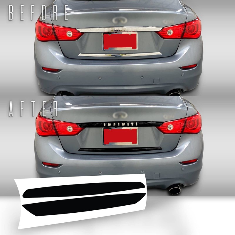 Gomu Trunk Trim Chrome Delete Blackout Precut Vinyl Wrap Overlay Kit Compatible with Infiniti Q50 2014 2015 2016 2017 - Metallic Matte Chrome Black