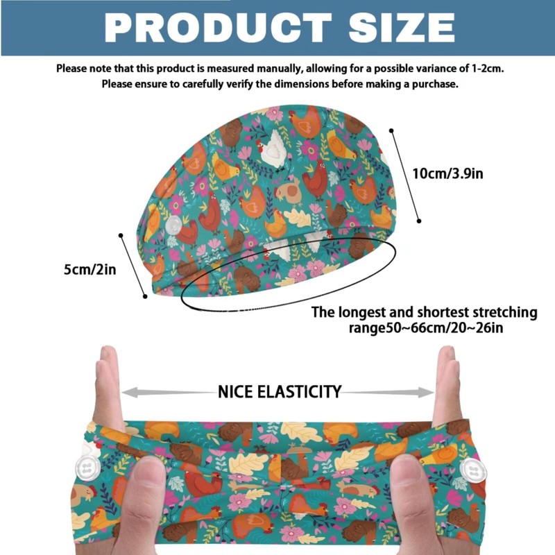 Gomyblomy 2 Pack Nurse Headbands with Buttons Wide Elastic Nursing Hair Band 2 Pack Non Slip Face Covering Ear Protection Holder for Nurse Doctors Headwraps, Rooster Chicken and Paw Print