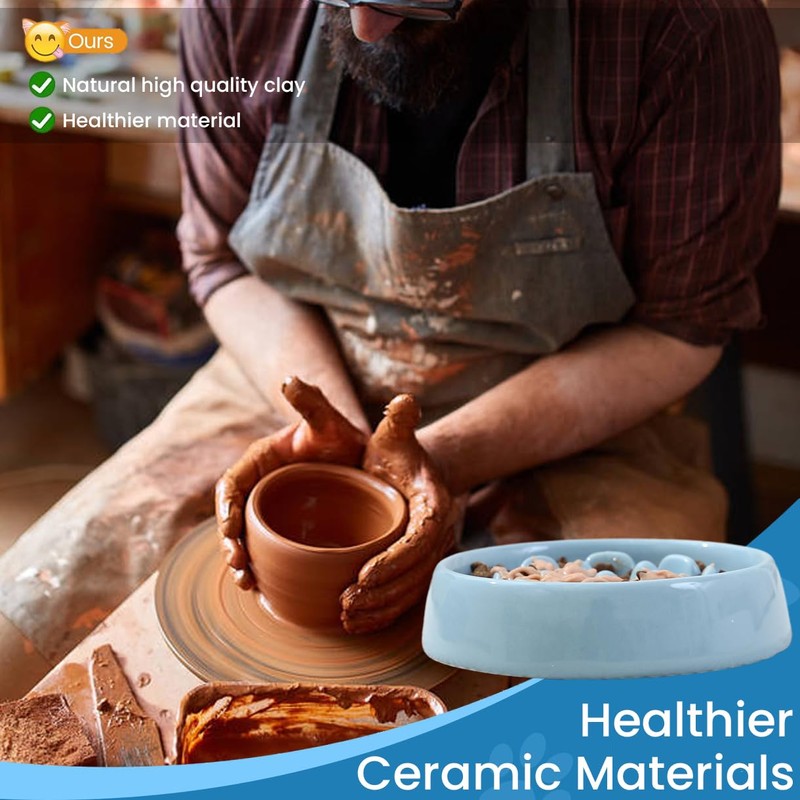 - 【Easy to Clean】Our ceramic slow feeder cat bowl is not only eco-friendly but also incredibly easy to clean. The smooth surface of the ceramic makes it can be easily cleaned by rinsing with water or placing it in the dishwasher, saving you cleaning time significantly.