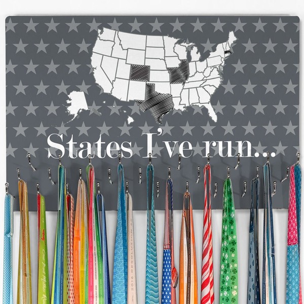 - HOOKED ON MEDALS! Our USA Map Hooked On Medals Large Hanger is the perfect way to display your collection of medals from marathons, half-marathons, 5K, 10K, triathlons, road races, and other athletic events. Choose your unique design and color from our large variety of options to represent your own personal style! Mark the states you've run with a dry erase or permanent marker!