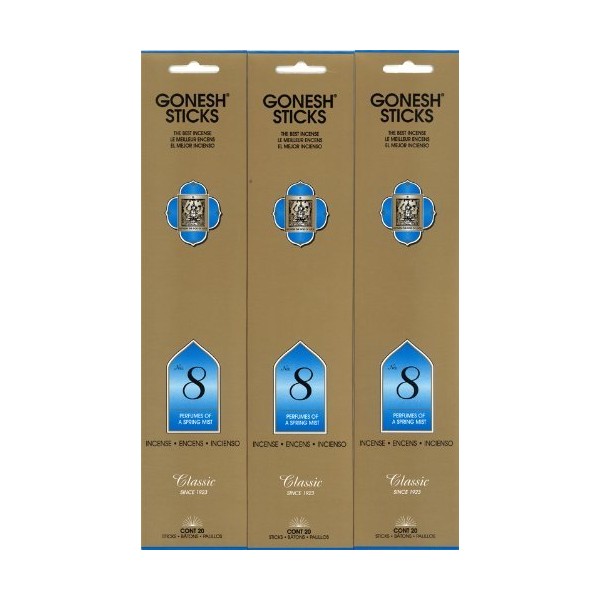 GONESH Incense No.8 Sticks 20 Sticks X 3 Pack (60 Count)