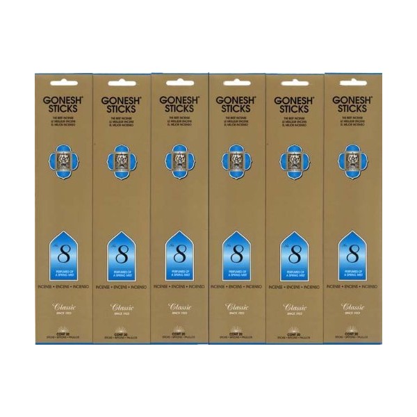GONESH Incense No.8 Sticks 20 Sticks X 6 Pack (120 Sticks)