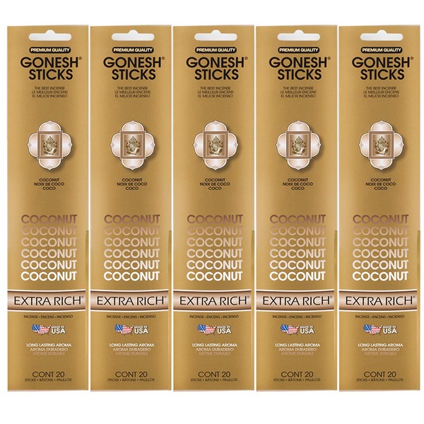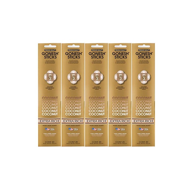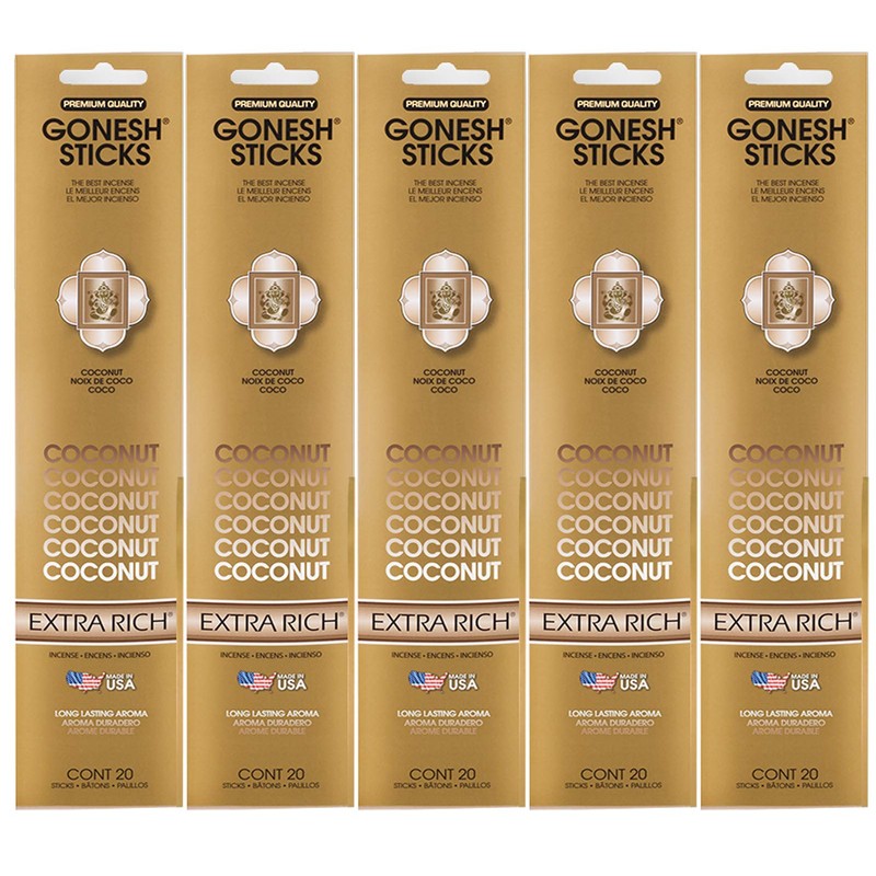 Gonesh Incense Sticks Extra Rich Collection - Coconut 5 Packs (100 Total)