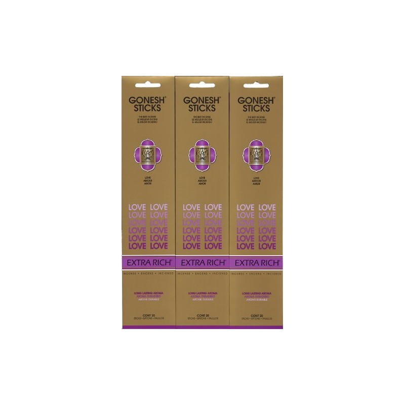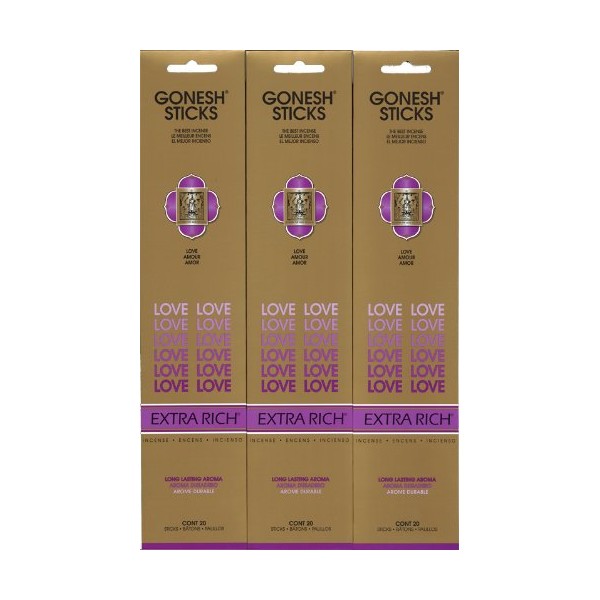 GONESH LOVE LOVE STICKS 20 PCS X 3 PACK (60 COUNTS)