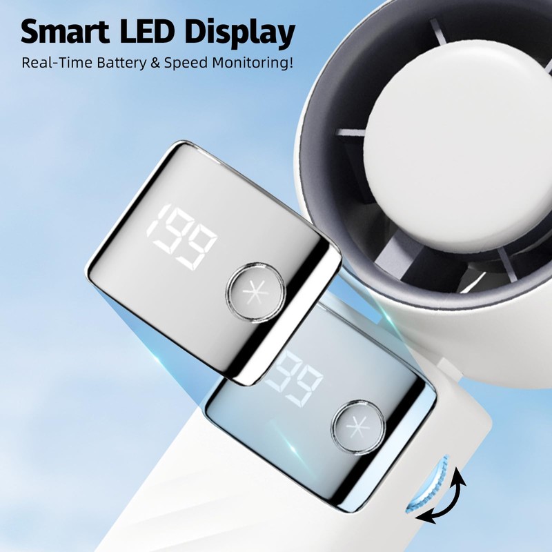 Enjoy 1-199 speed control for perfect airflow. 4000mAh battery lasts up to 20 hours (low speed) with fast charging. 15% more wind power, ultra-quiet. Use handheld, on desk, or as neck fan (180g). LED display shows settings. Great gift!