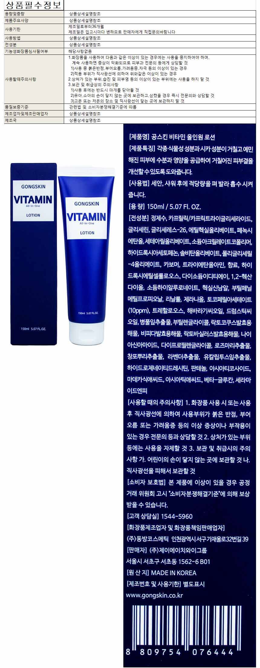 Gongskin Vitamin All-in-One 150ml 10ea