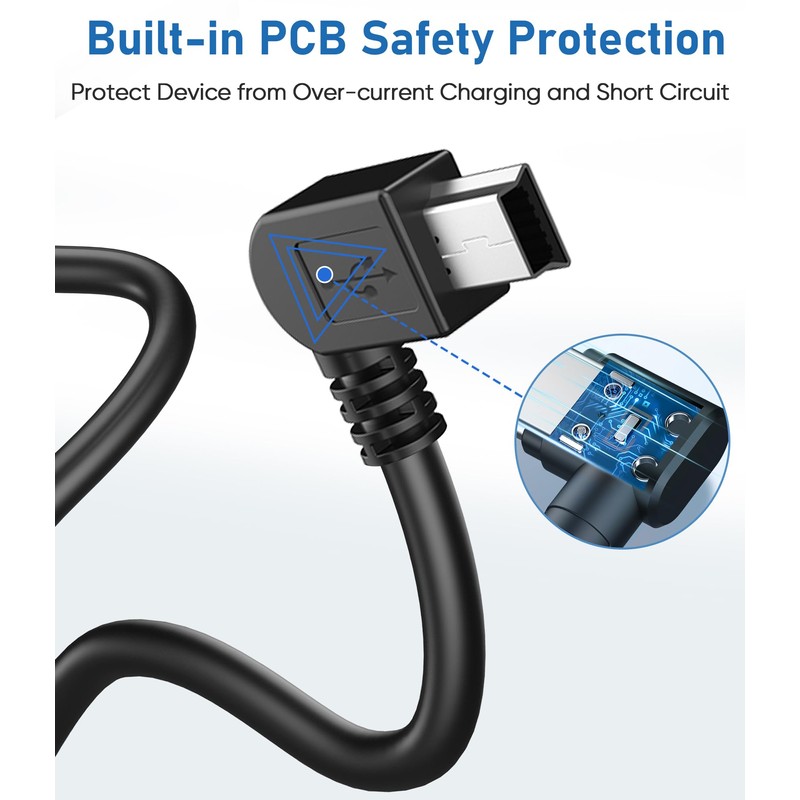 - 【PCB Board Safety Feature】 This Mini USB charging adapter cable for garmin GPS is also equipped with a PCB board as a safety feature to protect the GPS dashcam rearview mirror camera from overcharging, overvoltage or short circuit.
