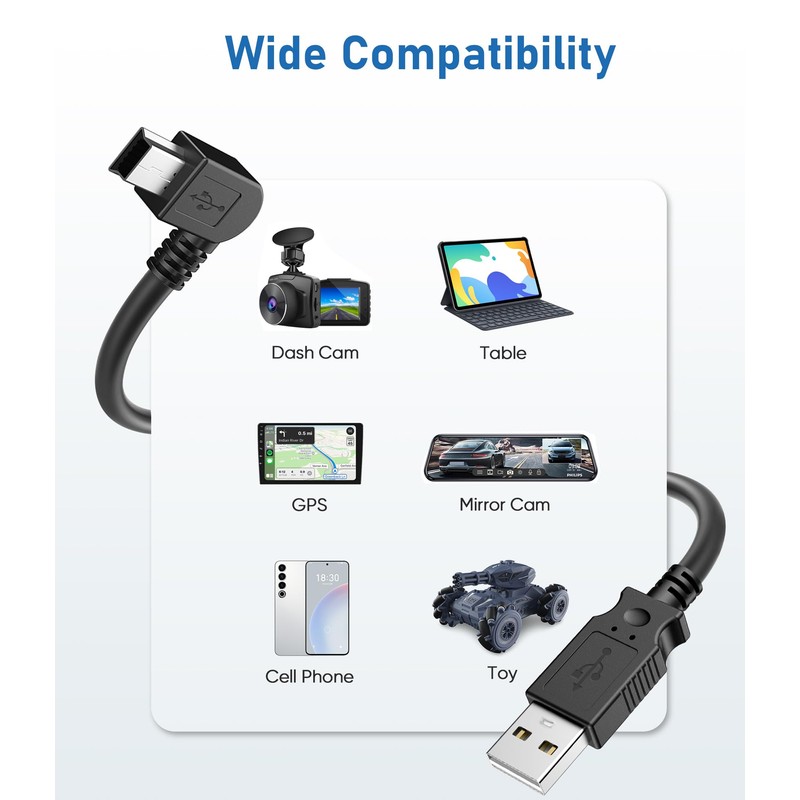 - 【Note Before Purchase】This 90-degree angle mini USB charger cable is compatible with Garmin Nuvi GPS, dashcams, mirror cameras, and devices that use the Mini port to charge or power up, and does not support data transfer. Please confirm the type of USB port of your device and select the correct charging cable before ordering.
