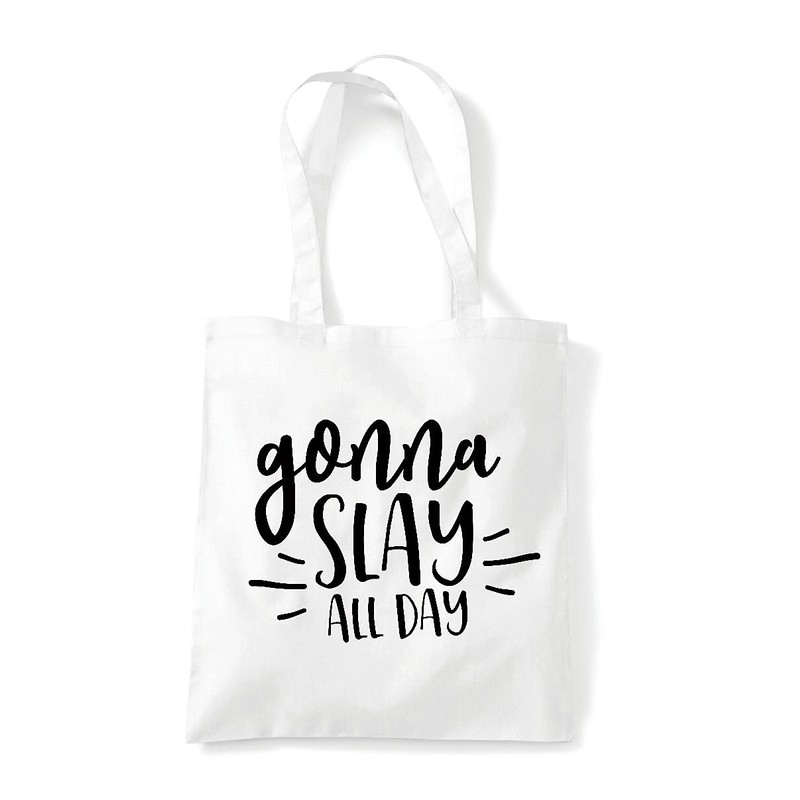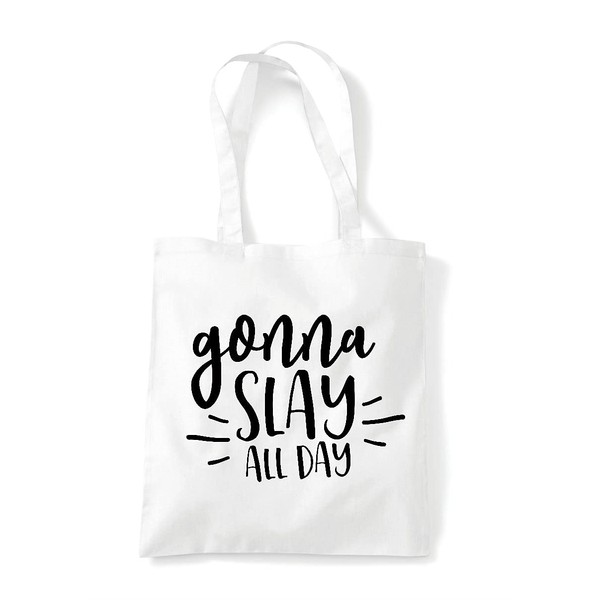 Gonna slay all day [CM17PMR] motivational statement tote shopping bag - White