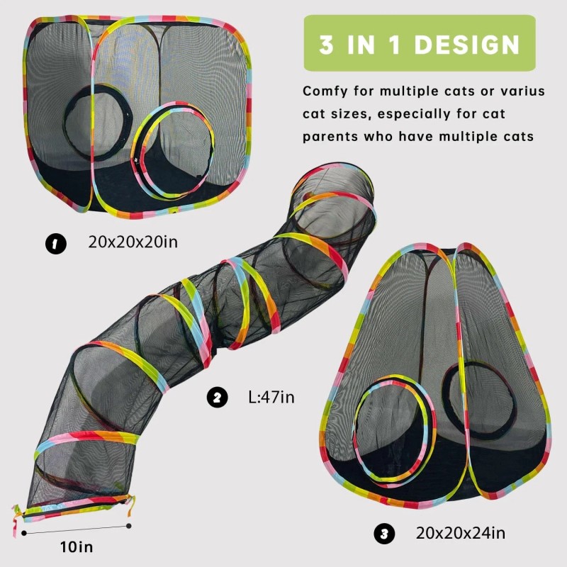 【Things To Note】Due to the use of flexible steel wire support, if your pet likes to bite or tear the tunnel, prevent the steel wire from being exposed and hurting the pet. If you have any questions, please feel free to contact us in time.