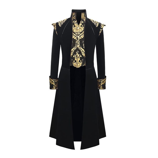 GONSIDA Men's Steampunk Medieval Tailcoat Jacket Victorian Gothic Frock Coat (Black, Medium)