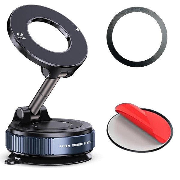 GONSIFACHA スマホホルダー 車 マグネット真空吸盤 車 スマホスタンド Mag-safe 車載 安定性 高級合金素材 車載スマホホルダー 360°回転 多角度自由調節 片手操作 1秒で着脱折りたたみ式 スマホ車載ホルダ全機種対応