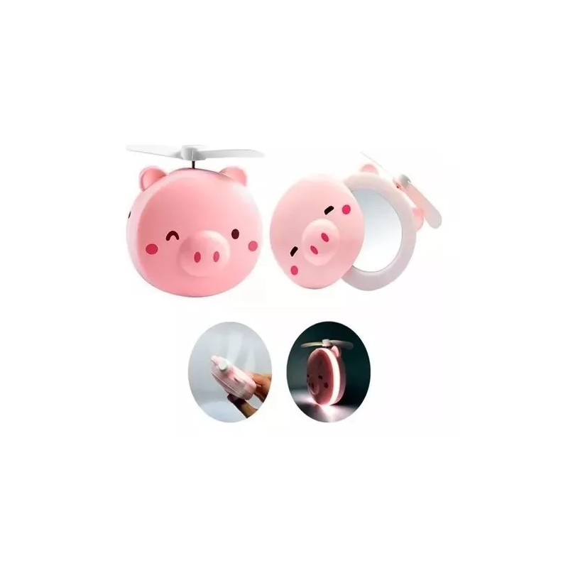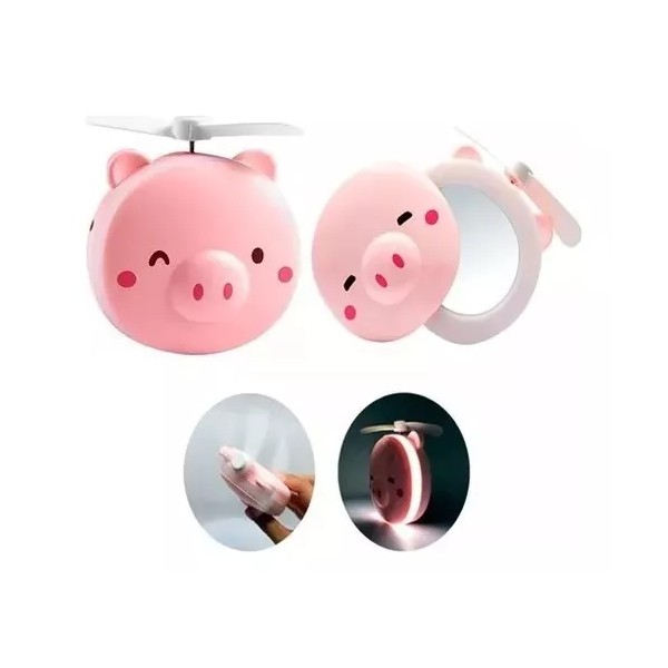 GONTAM Aro De Luz Clip Espejo Ventilador Recargable Forma Puerquito