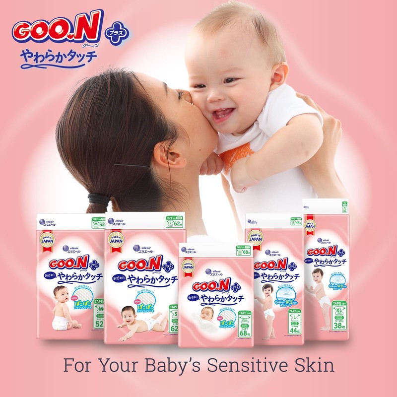 - GOO.N Plus+ is a diaper designed for sensitive skin that prevents irritation and does not dry the baby's skin.