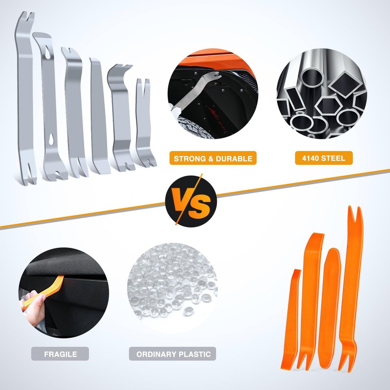 - 【High-quality Materials】- Our auto trim tools made of metal plate, high quality material with heavy-duty construction for durability. It is more durable and more environmentally friendly than other plastic panel removal tools.