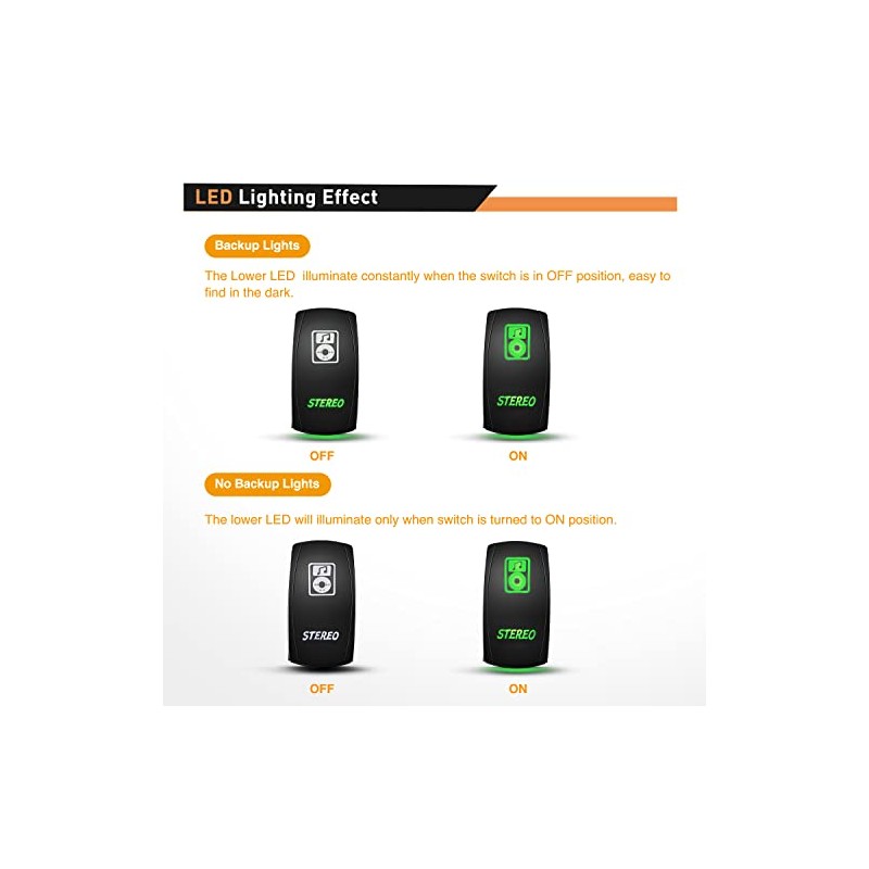 - Easy to install and use: 5 pin on-off rocker switch with SPST design (single pole single Throw), simple installation, freely turn on or off the light