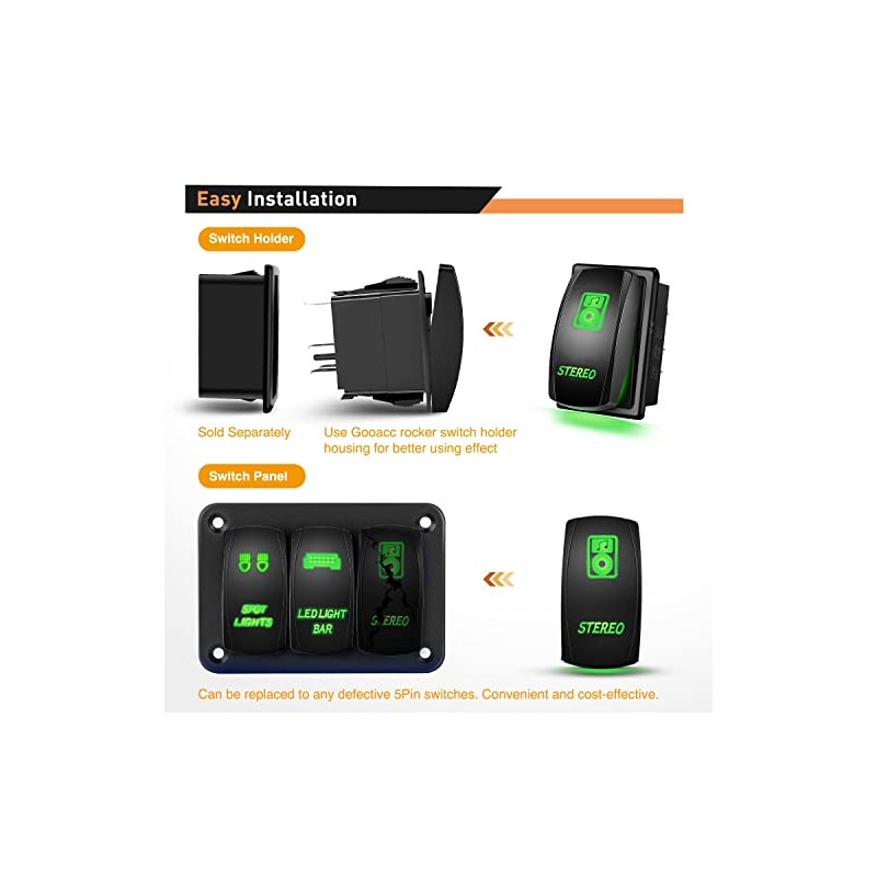 - Package includes: 1x 5 pin rocker switch, 1x jumper wires set, 1x wiring diagrams. 2-Year Warranty by GOOACC.