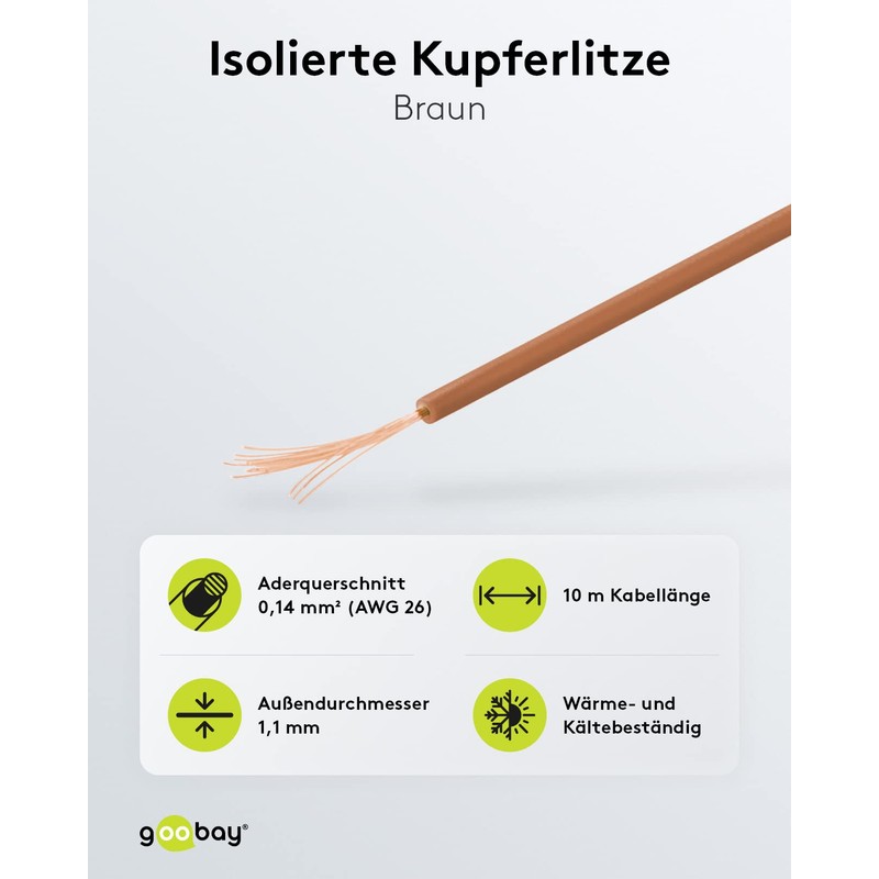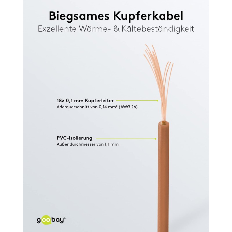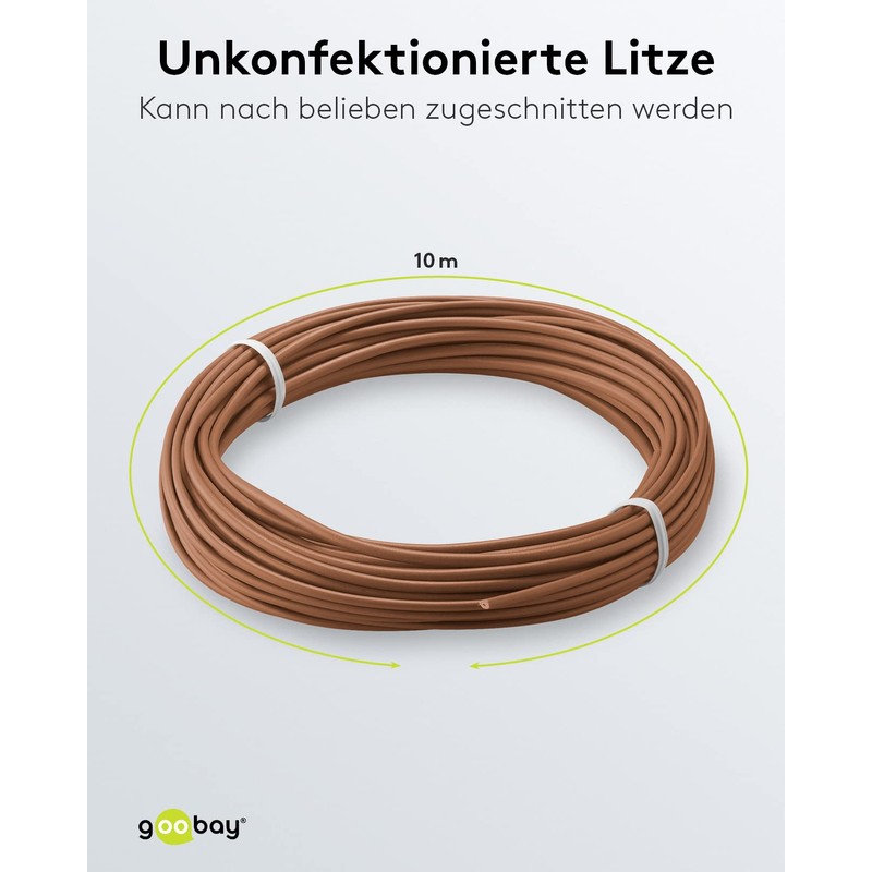 goobay 55040 Copper Stranded Insulated, 1 Core, Multi-Wire (18 x 0.1 mm), Single Core Copper Cable, Electrical Conductor in Model Making and Electrical Engineering, PVC Insulated, Brown, 10 m