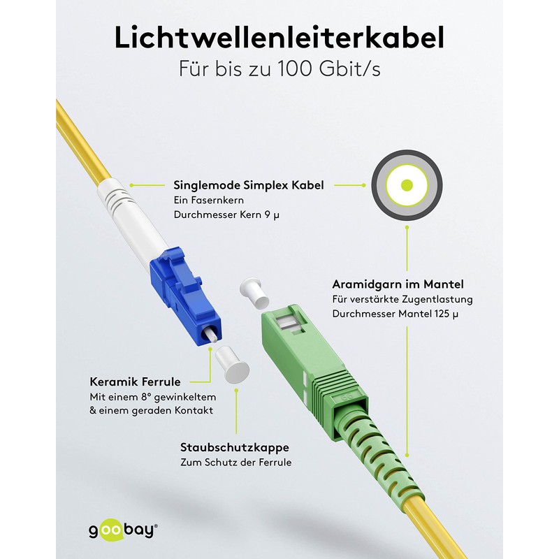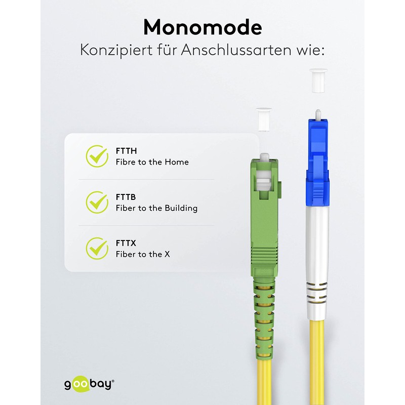 goobay 59648 Fibre Optic Cable (FTTH) / Singlemode (OS2) Simplex / SC APC (8°) Male to LC-UPC (8°) Male/Light Wave Cable / 1 Metre