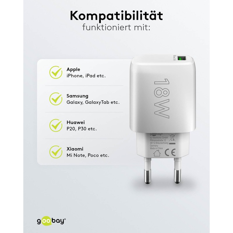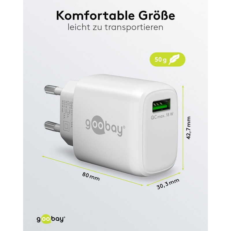 goobay 616723 fast charger USB QC 3.0 (18 W) White White