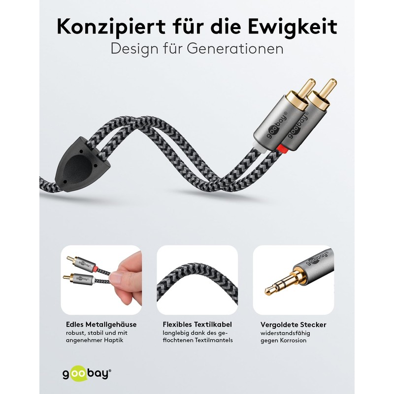 goobay 65285 Aux Cable RCA to 3.5 Jack 1 m/Aux Audio Cable for Smartphone/Console/Hi-Fi Stereo/Textile Jacket/Gold