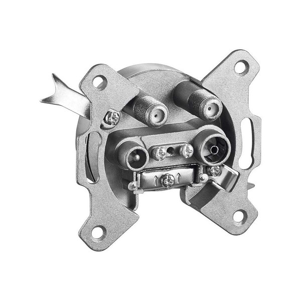 - Universal antenna socket with coaxial socket for connecting coaxial cable; through socket with DC (DC) passage; without cover and without surface-mounted housing