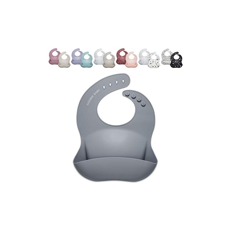 Goobie Baby Silicone Baby Bib with Food Catcher - Adjustable Waterproof Feeding Bib for Babies and Toddlers 4 to 36 Months in Stylish Colors for Girl and Boy - Modern, Soft, Easy to Clean (Dove Gray)