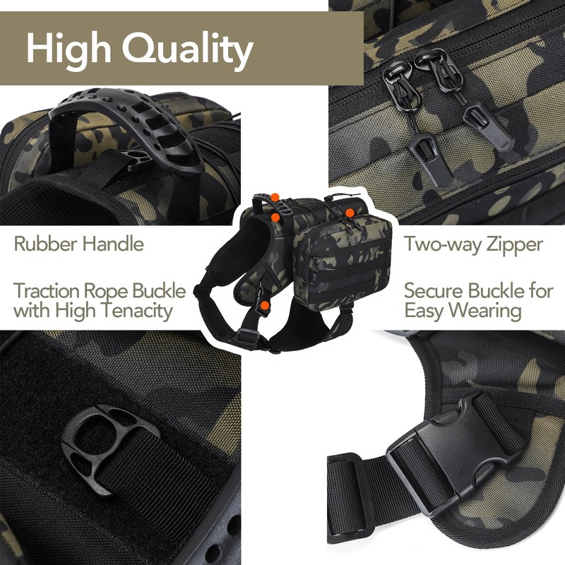 GooCare x JUMAHE Dog Backpack for Hiking and Camping - Detachable Dual-Sided Pack with Explosion-Proof Strap, Ideal for 60-100lbs Large Dogs, Breathable and Waterproof Fabric (Camo)