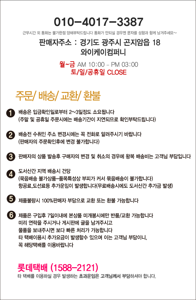 - A/S manager and phone number or consumer consultation phone number: See detailed product description
