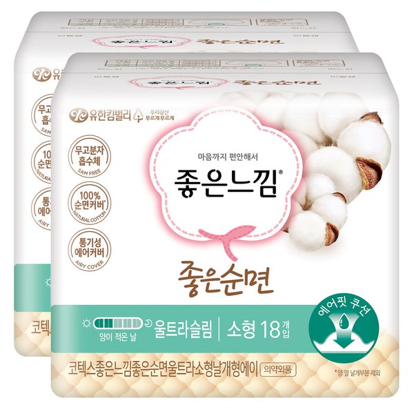 Good Feel Good Cotton Ultra Small 18 Sheets x 2 Packs / 좋은느낌 좋은순면 울트라 소형 18매 x 2팩