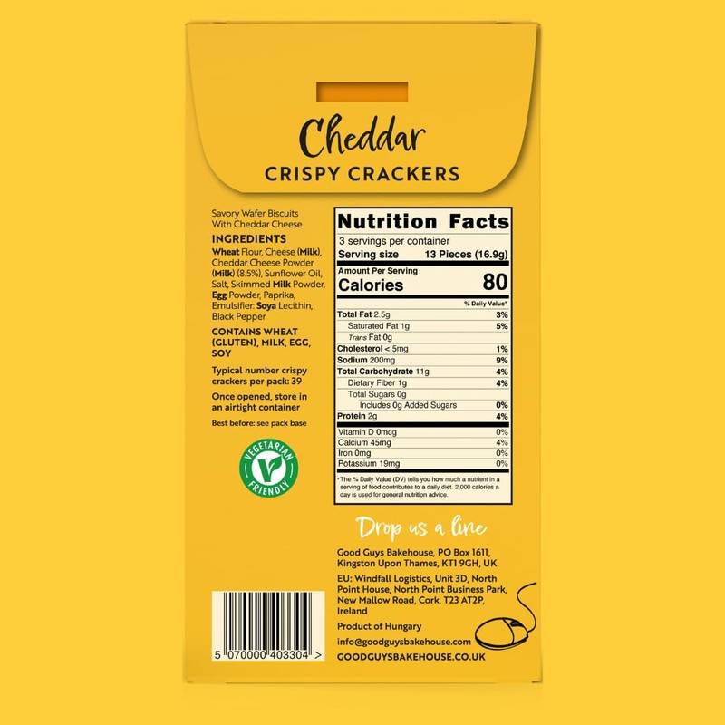 Good Guys Bakehouse Cheddar Crackers, Low Calorie Snacks, Tasty, Crispy, Healthy Cheese Crackers, Pack of 8. 39 biscuits per pack. Non-GMO