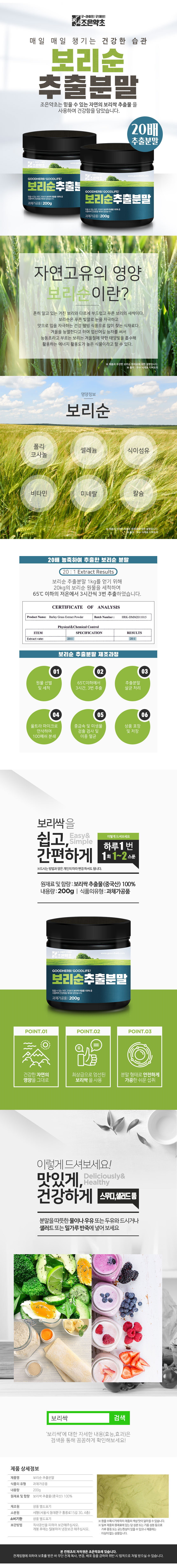 새싹보리 보리새싹 추출분말 가루 200g x 3