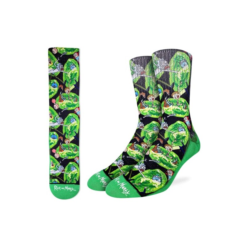 Good Luck Sock Men's Rick and Morty, Portals Socks, Adult, Shoe Size 8-13