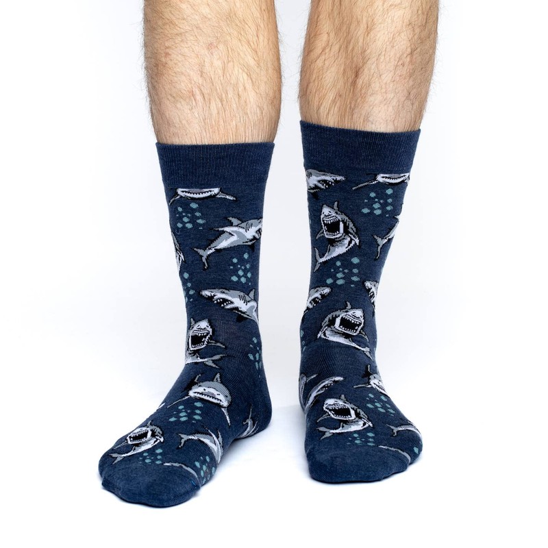 Good Luck Sock Men's Shark Attack Socks, Adult, Shoe Size 7-12