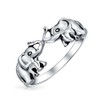 Good Luck Trunk Up Zoo Animal Two Elephants Ring For Women For Teen Oxidized .925 Sterling Silver