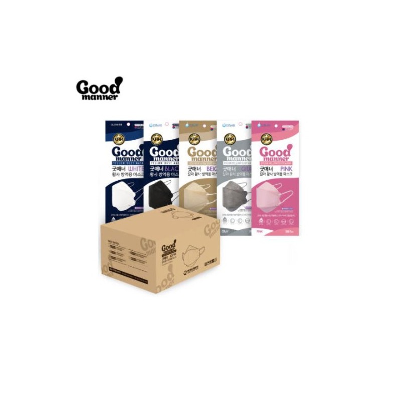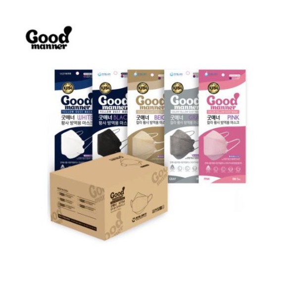 GOOD MANNER Color Yellow Dust Mask KF94 #Large 100ea (5ea*20packs), Color:White