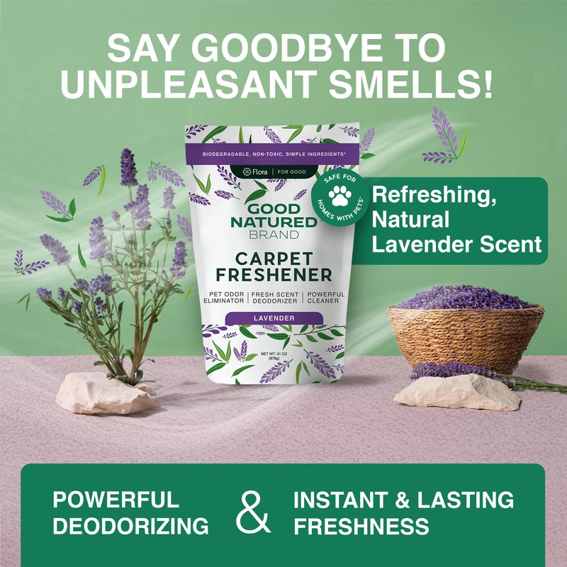 Good Natured Brand | Carpet Freshener & Deodorizer Powder | Pet Odor Eliminator for Strong Odor & Pet Urine | Fresh Natural Lavender Scent | Biodegradable, Safe for Homes with Pets - 31oz