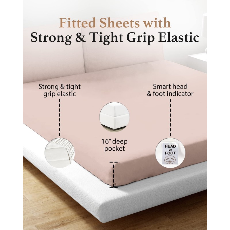 - Effortless Bedding with Head & Foot Tags- Make bed-making easy with our 800 thread count queen deep pocket fitted sheet, featuring handy head & foot indicator tags. These single fitted sheet stay in place so that you'll have one thing less to worry about! Pair this queen bed sheets deep pocket with matching pillow cases and a waffle blanket from our collection to give your room an aesthetic makeover!