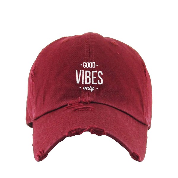Good Vibes Only Vintage Baseball Cap Embroidered Cotton Adjustable Distressed Dad Hat Maroon