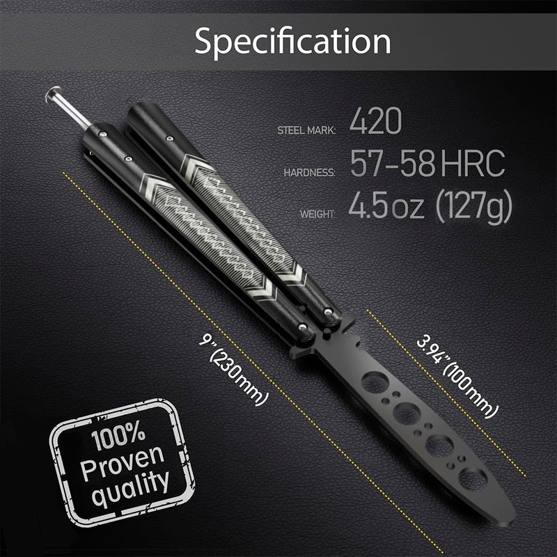 - Perfect butterfly training is suitable for beginners and teens. Butterfly knife practice blade is safe and easy to use. The knife can't be sharpened due to its design.Balisong trainer provides excellent corrosion & treatment resistance, high durability.