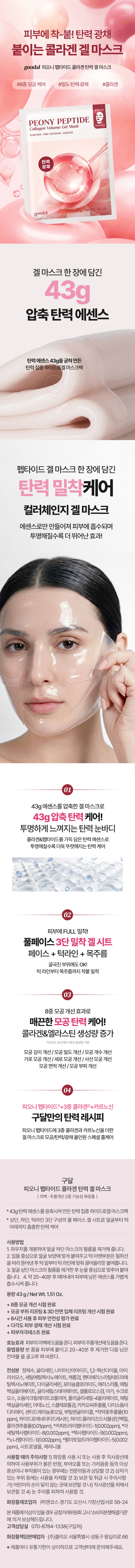 Goodal Peony Peptide Collagen Volume Elasticity Glow Gel Mask Pack x 10 sheets