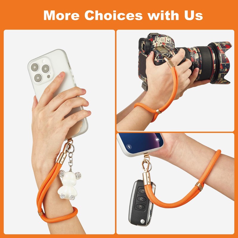 • Durable and Sturdy: This phone wrist strap features a finely crafted hardware buckle that will not rust when exposed to water. The rope is lightweight and soft to wear, which will provide you with comfortable use and suitable for daily use. The length of phone lanyard: 18cm. Diametre: 7mm.