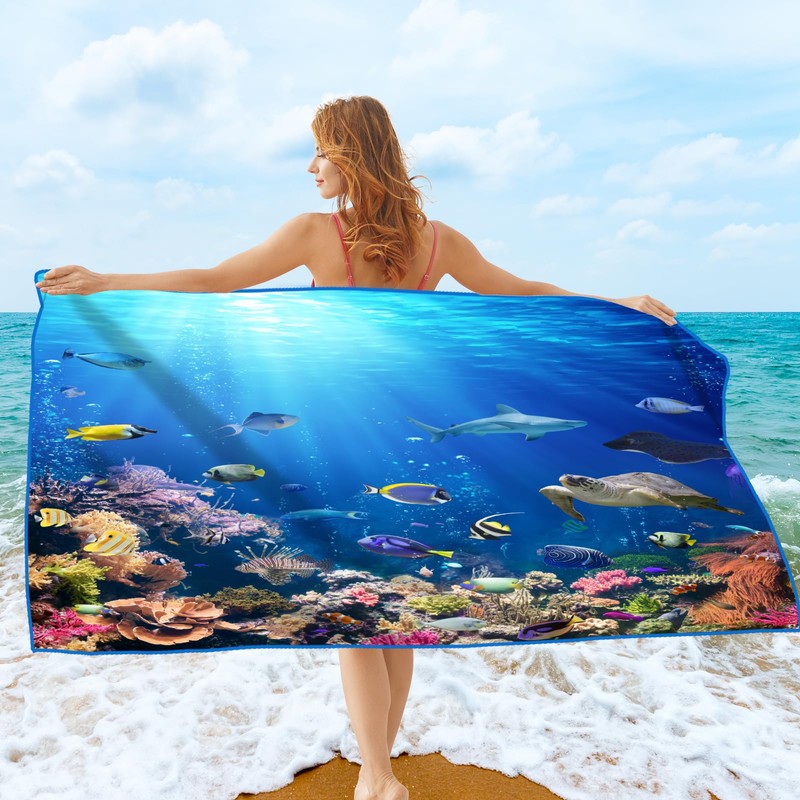 goodbath Microfiber Beach Towel, Quick Dry Oversized Sand Free Light Weight Cute Bath Towel Travel Swimming Pool Yoga,71"x32", Underwater Ocean Tropical Fish