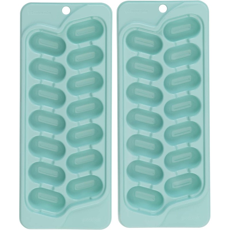 GoodCook Pack of 2 Plastic Ice Cube Trays with 14 Half Oz. Cavities Each (28 Cubes Total), Stackable Ice Cube Mold Trays, Blue
