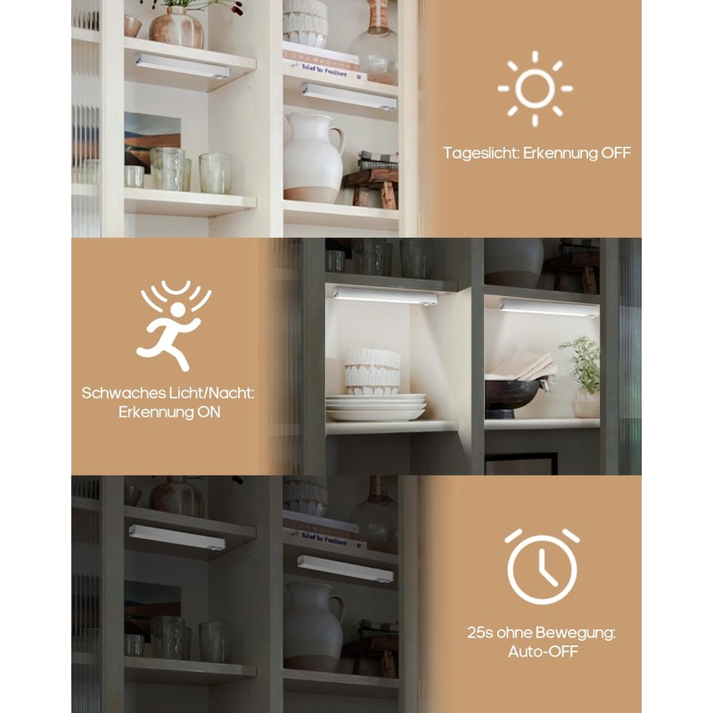 - Slimmer and brighter: This cabinet lighting with motion sensor is 18 cm mini size, but 8000 K and inside 10 pure white LEDs with 95 lm bright enough offer more possibilities, perfect for lighting where light is needed, even corners. Unleash its charisma and banish shadows with ease. (6 pieces in 1 pack)