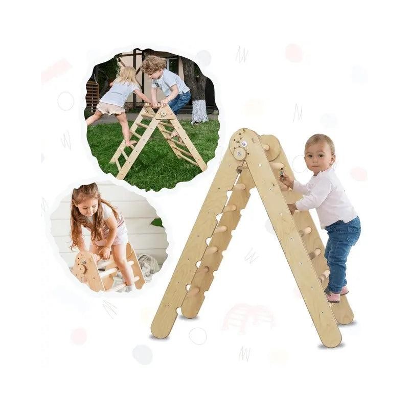 Designed specifically for children aged 1 to 7, this triangle ladder is an exceptional training apparatus that aligns with the Montessori method. With 5 adjustable height positions, it's versatile to fit both the child's growth and the available space. Combines with other Goodevas products: climbing net, slide. Keep in mind that you can assemble a set of two, three, four, or even five items and use them all together.