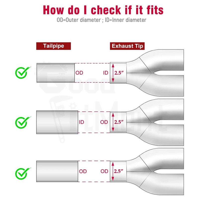 ❅ Dimension: Universal fits 2.5" outer diameter of trucks car exhaust tailpipe (note: please measure dimension to make sure it will fit before purchasing)