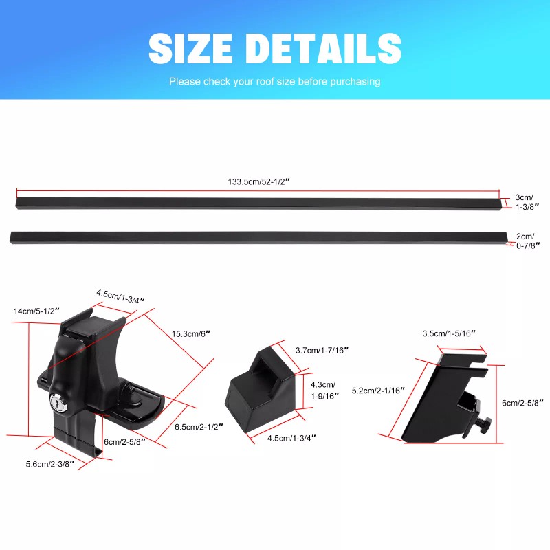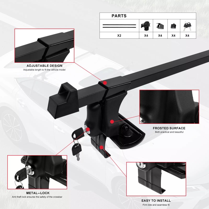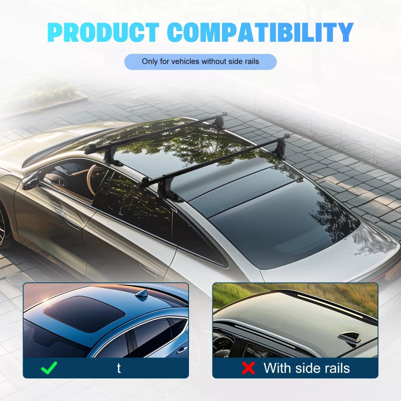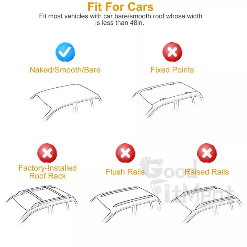 đăHigh Quality DesignăUniversal fit most vehicles with car bare/smooth roof whose width is less than 52in. Don't fit any vehicles with raised rails, flush rails, fixed points and factory-installed roof rack.